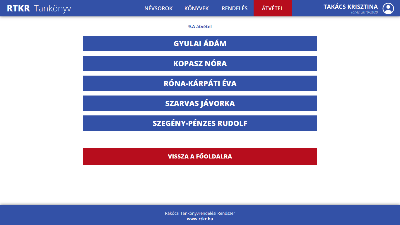Könyvátvétel – 2. lépés (tanulói névsor)