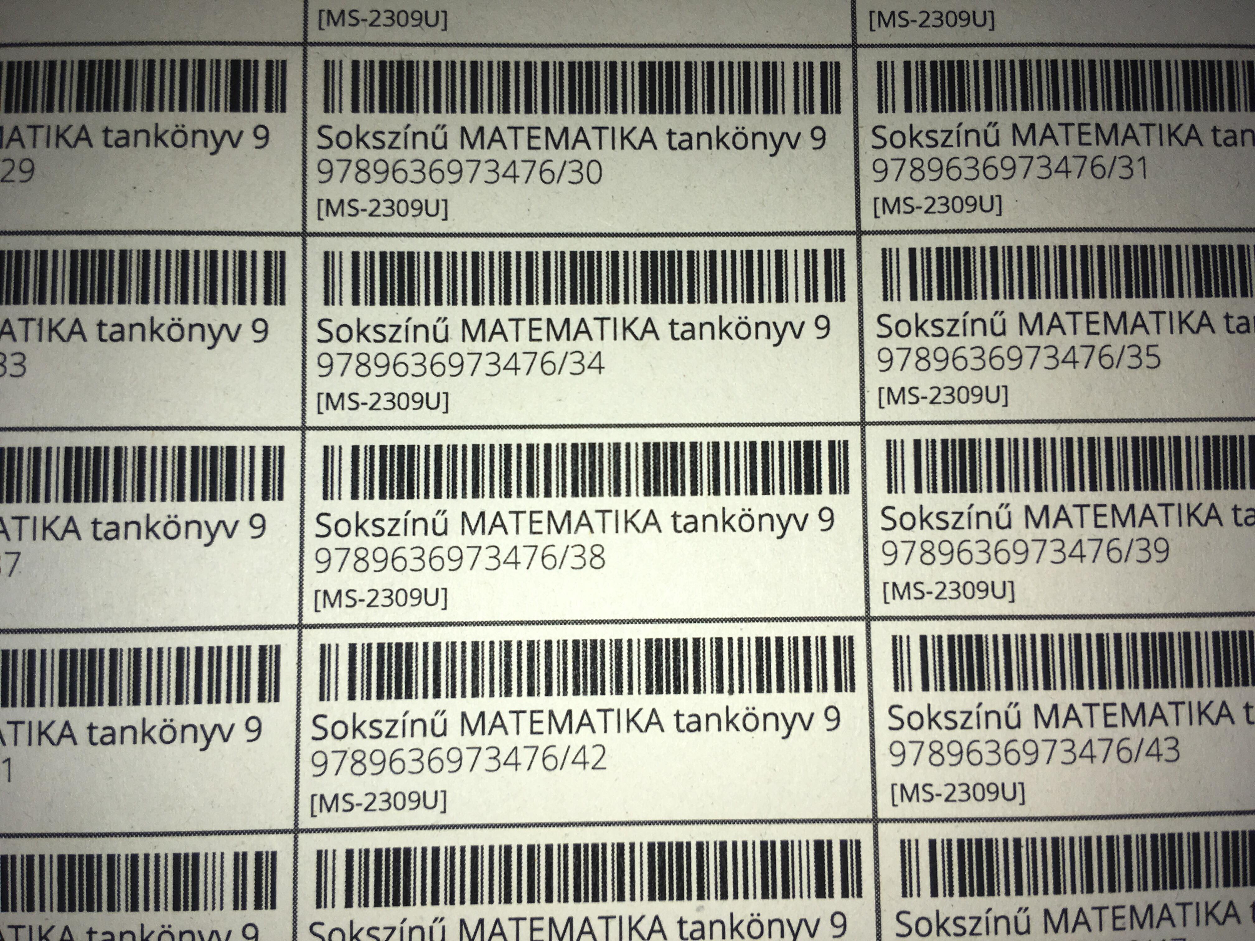 A program által előállított vonalkódok etikett lapon, amelyek beragaszthatóak a tartós tankönyvekbe