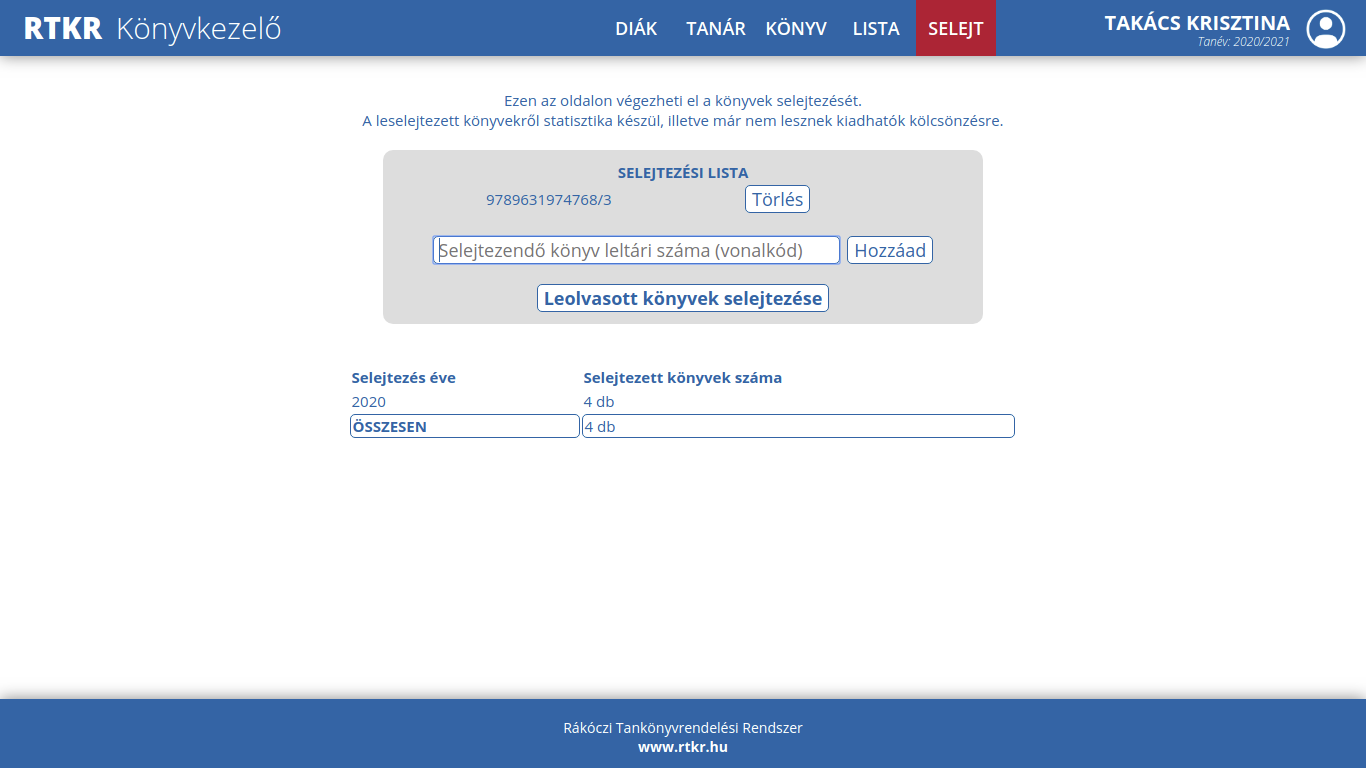 Könyvátvétel – 1. lépés (osztály kiválasztása)